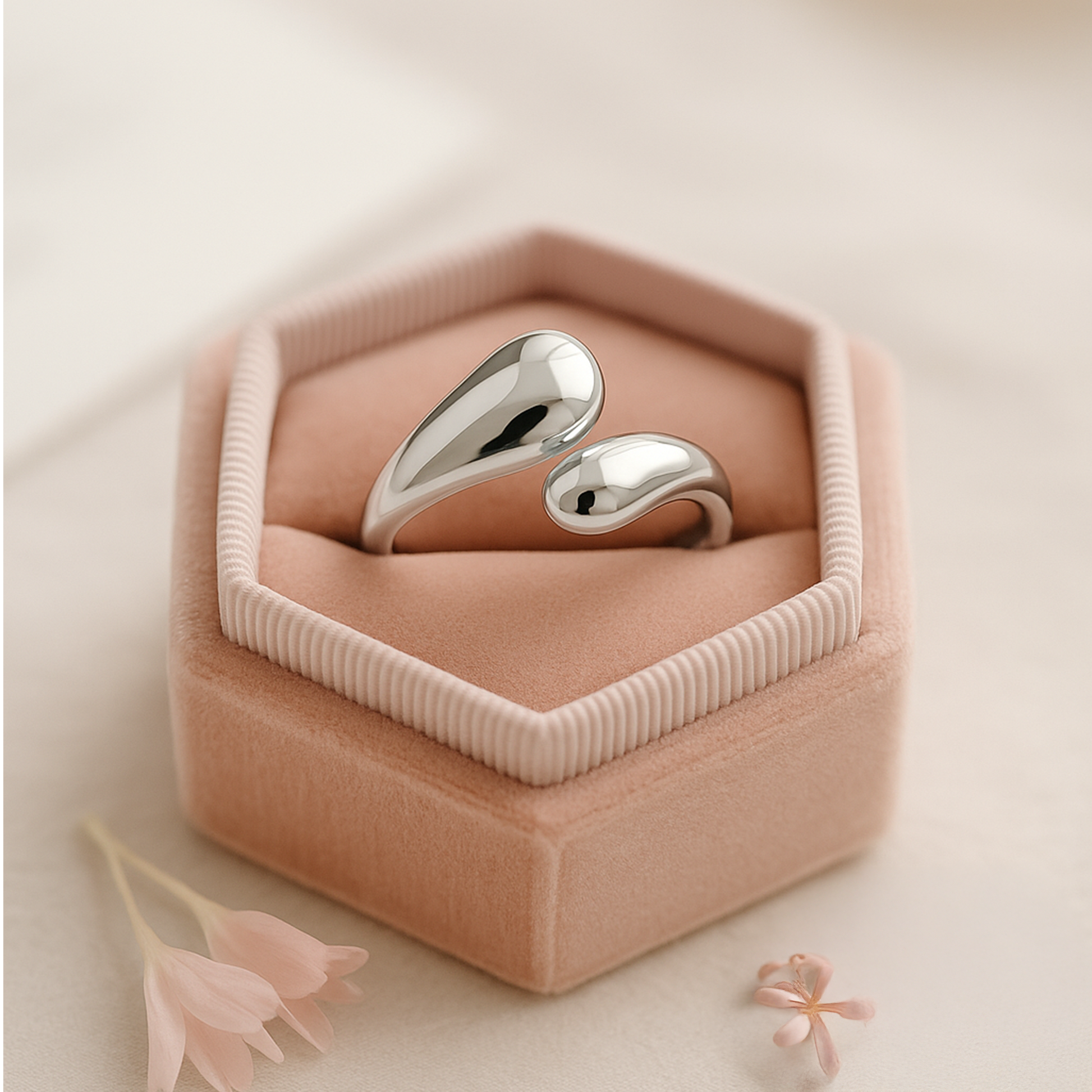 Soft, fluid, and beautifully sculptural — the Liquid Curve Open Ring brings a modern statement to your jewellery collection. Designed with smooth, teardrop-shaped ends that wrap gracefully around the finger, this piece captures the look of molten metal frozen in motion.