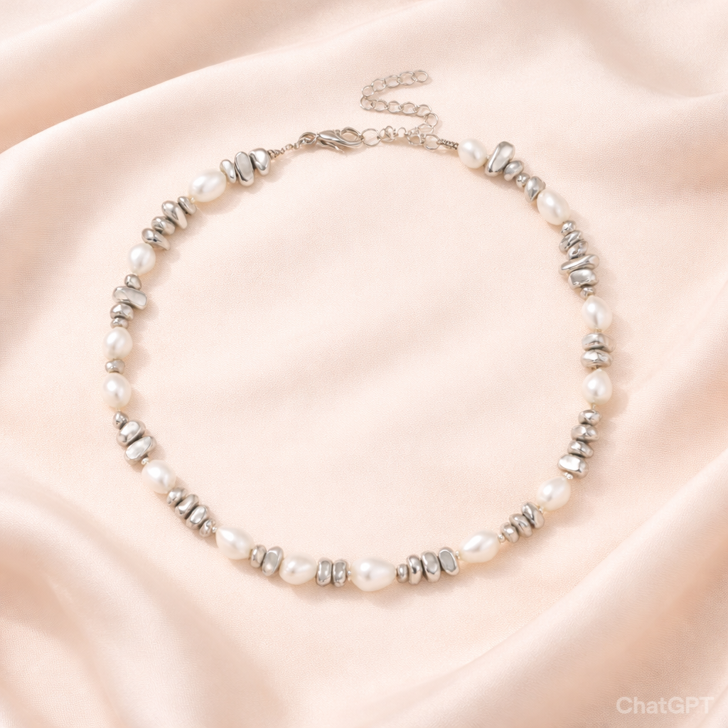 Elevate your everyday look with the Tidal Pearl Harmony Necklace, a contemporary take on classic elegance. Featuring a stunning blend of irregular freshwater pearls and sculpted metal beads, this piece brings together softness and structure in the most effortless way.